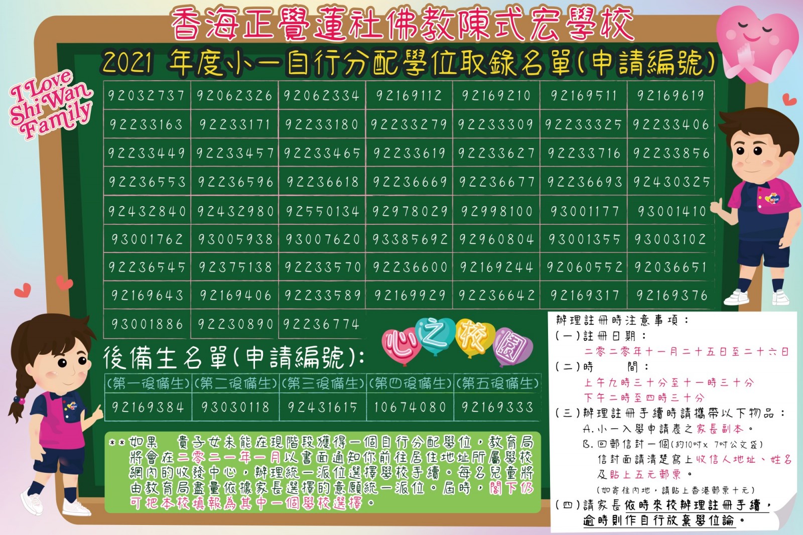 2021年度小一自行分配學位取錄名單(申請編號)